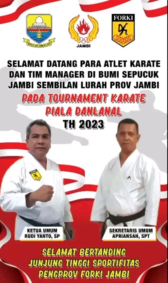 Bertempat di Gor Kota Baru Jambi, Jalan H. Agus Salim, Paal Lima, Kota Jambi, Provinsi Jambi telah berlangsung Pembukaan Turnamen Karate Piala Danlanal Palembang Se-Sumatera Tahun 2023 yang diikuti oleh ± 1.302 Peserta.